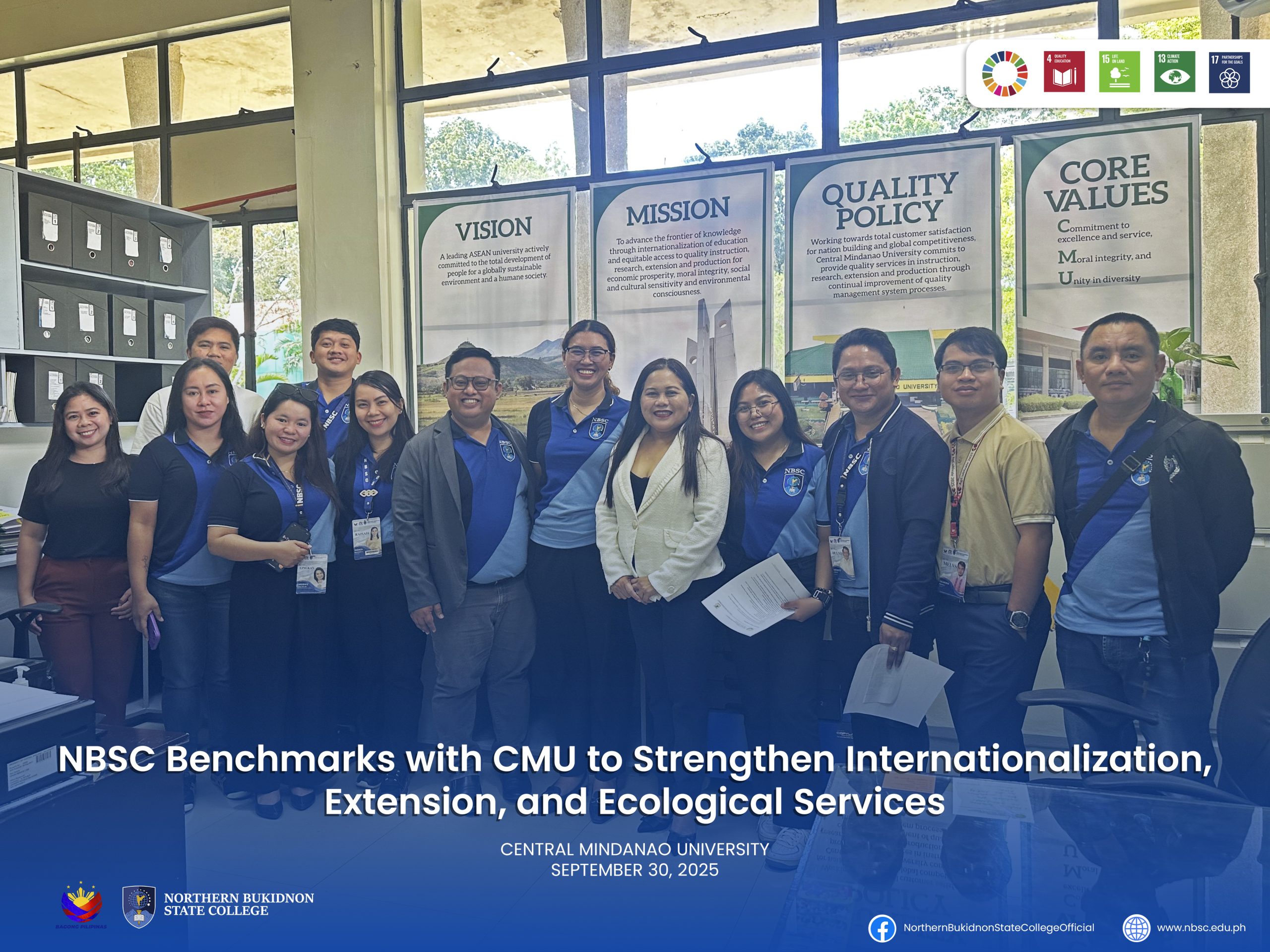 Read MoreNBSC BENCHMARKS WITH CMU TO STRENGTHEN INTERNATIONALIZATION, EXTENSION, AND ECOLOGICAL SERVICES The General Services Office (GSO), Community Extension Services Division (CESD), and the International Affairs and External Linkages Office (IAELO)…