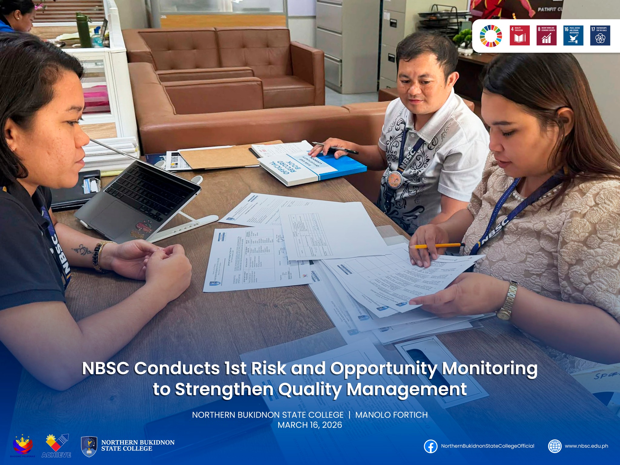 NBSC CONDUCTS 1ST RISK AND OPPORTUNITY MONITORING TO STRENGTHEN QUALITY MANAGEMENT Northern Bukidnon State College (NBSC) successfully conducted its 1st Risk and Opportunity Monitoring on March 16, 2026, as part…