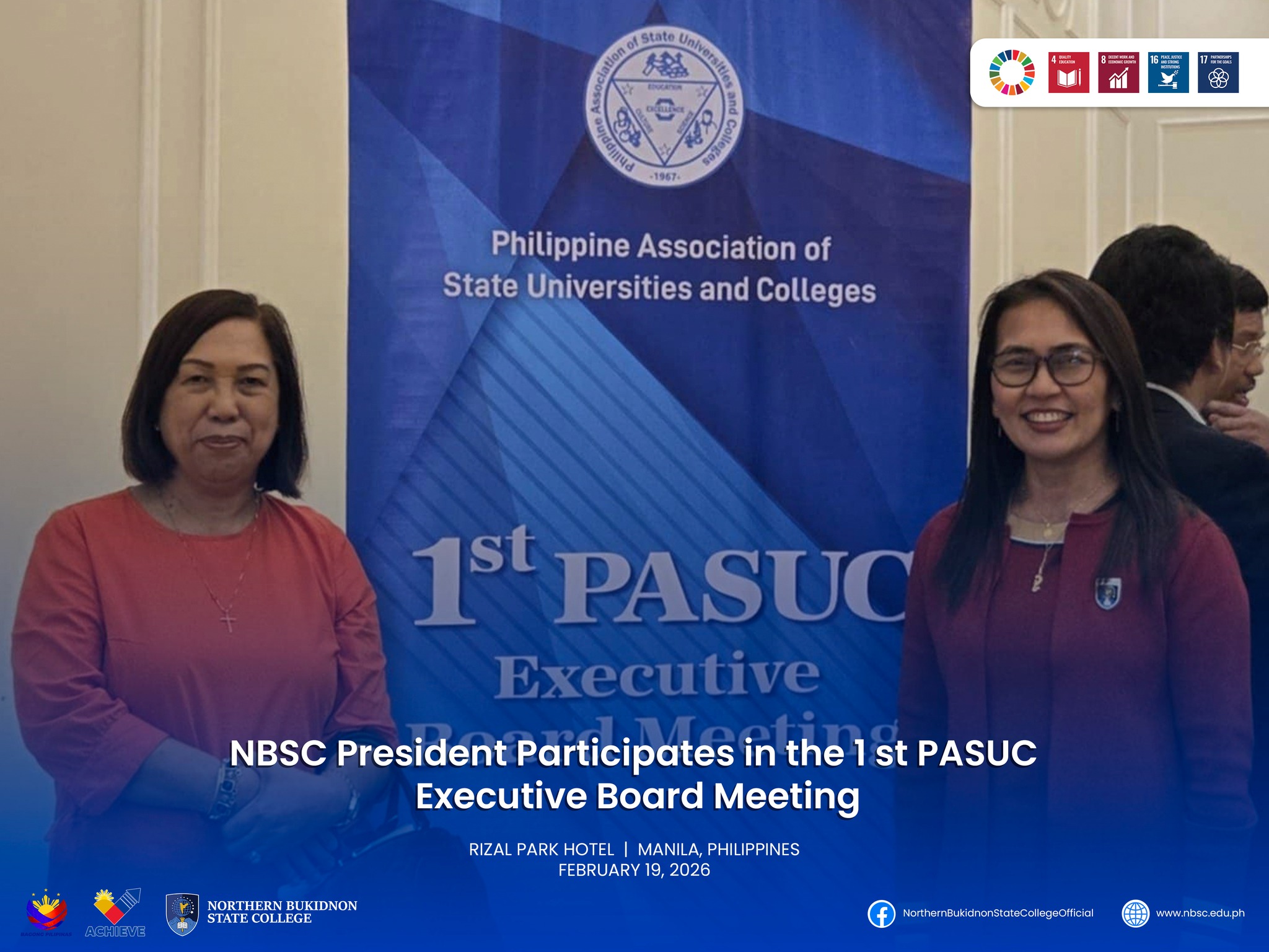 Read MoreNBSC PRESIDENT PARTICIPATES IN THE 1ST PASUC EXECUTIVE BOARD MEETING Northern Bukidnon State College (NBSC) reaffirmed its active role in national higher education governance through the participation of NBSC President…