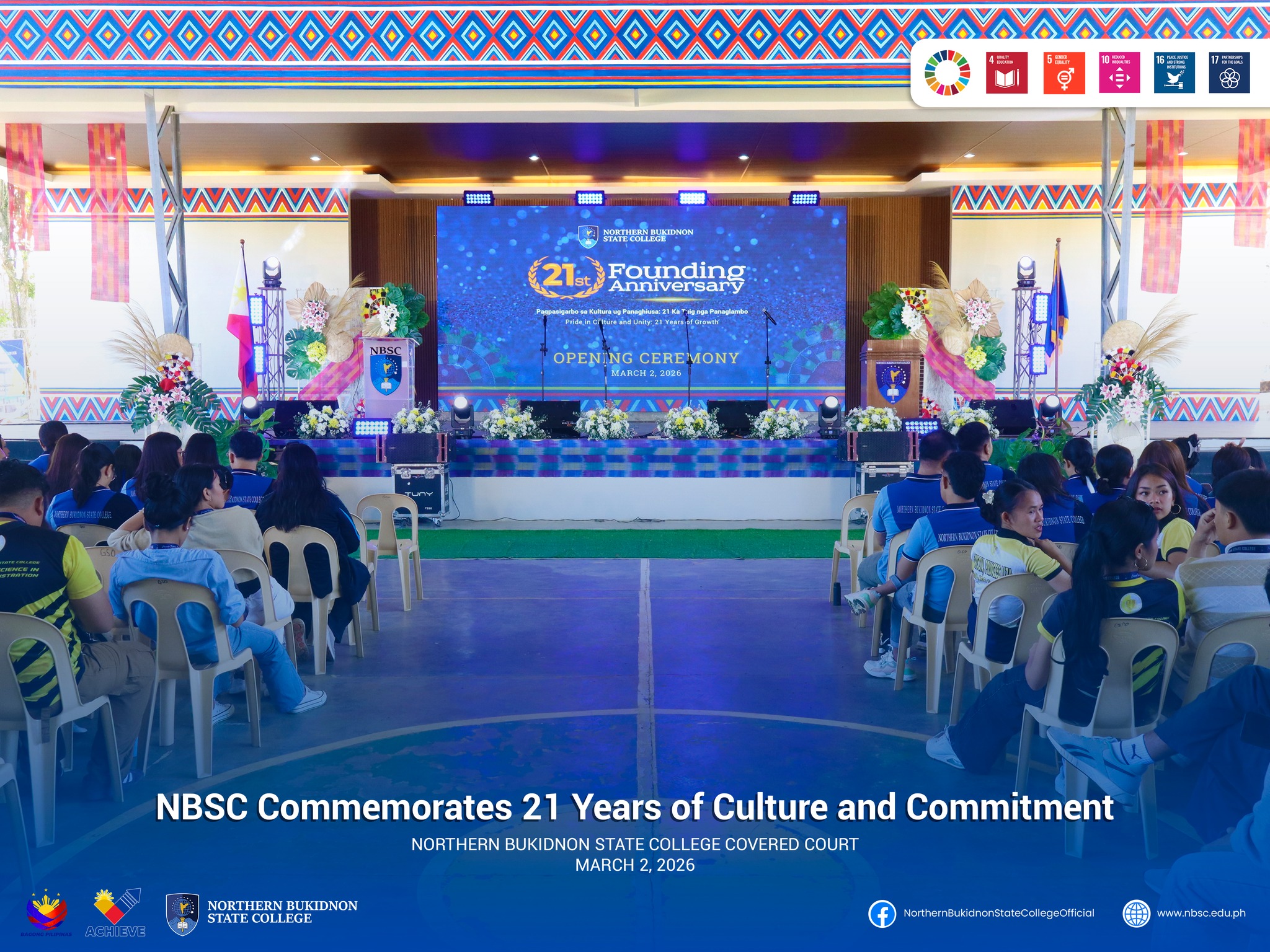 Read MoreNBSC COMMEMORATES 21 YEARS OF CULTURE AND COMMITMENT Northern Bukidnon State College (NBSC) formally opened its 21st Founding Anniversary celebration on March 2, 2026, with a ceremony held at the…