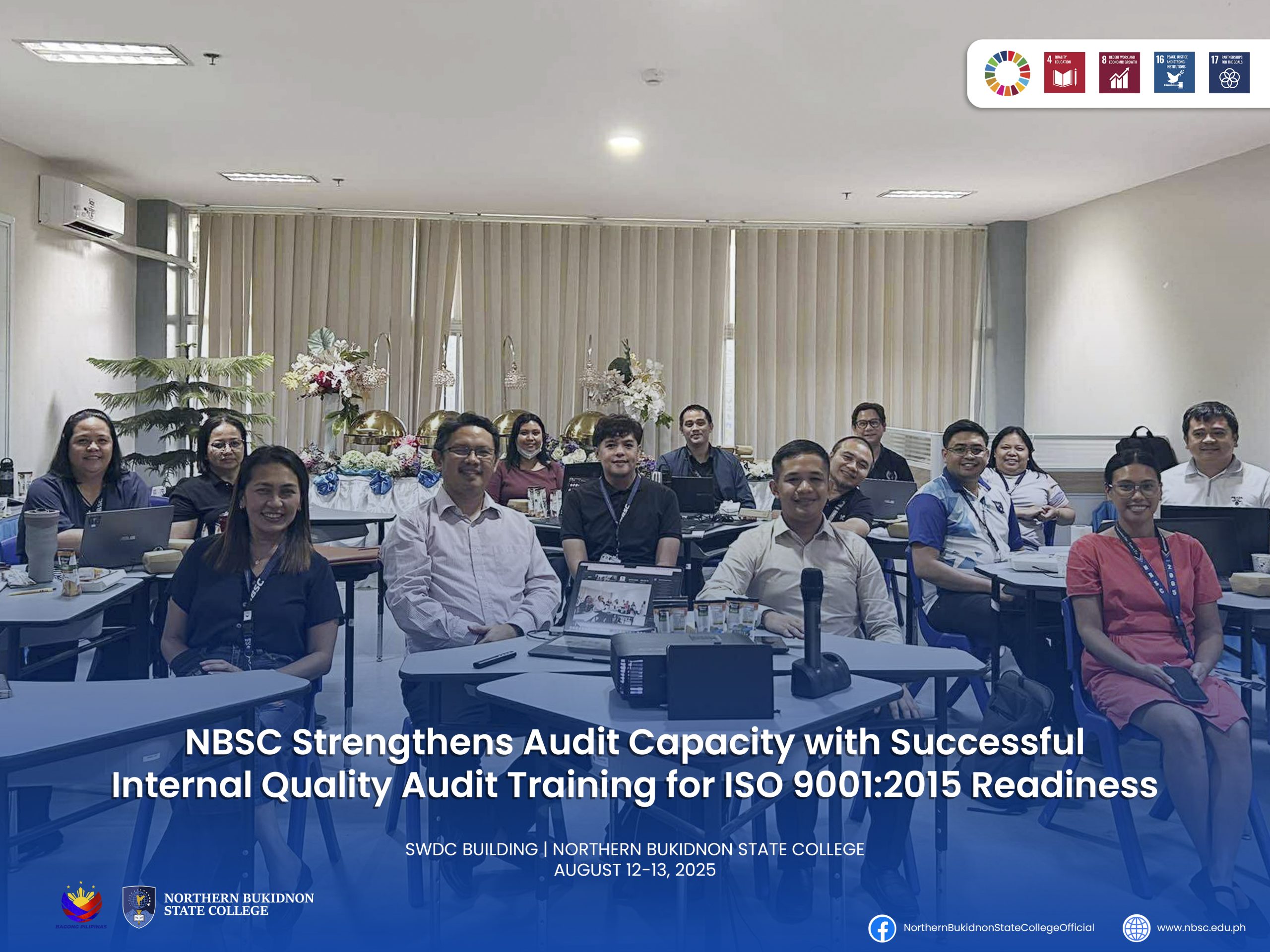 Read MoreNBSC Strengthens Audit Capacity with Successful Internal Quality Audit Training for ISO 9001:2015 Readiness Northern Bukidnon State College (NBSC) has successfully concluded its two-day Internal Quality Audit (IQA) Training, held…