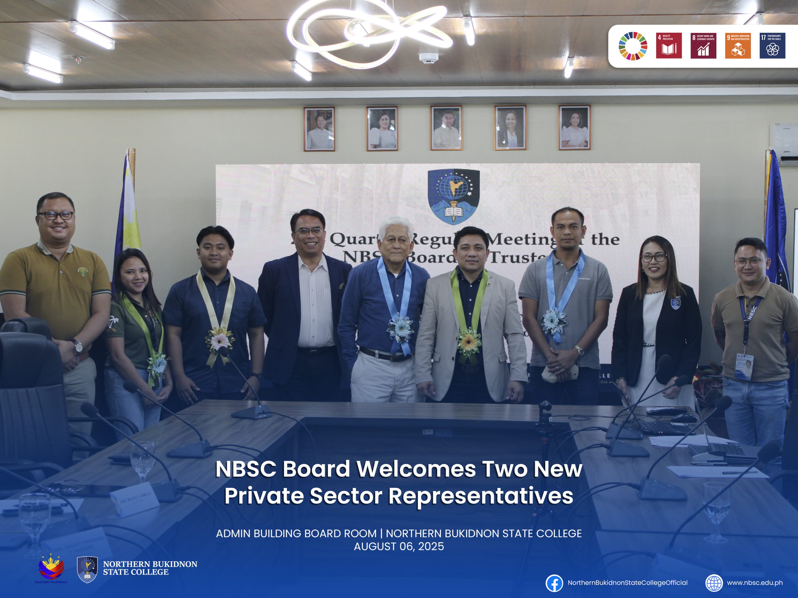 The Board of Trustees (BOT) of the Northern Bukidnon State College (NBSC) appointed two new Private Sector Representatives (PSRs) on Wednesday, August 6, 2025, who will form part of the governing body.