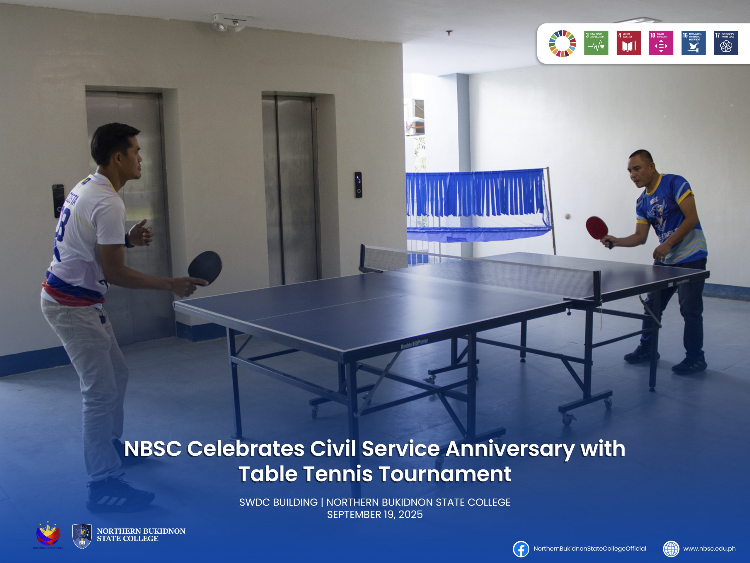 Northern Bukidnon State College (NBSC) celebrated the 125th Philippine Civil Service Anniversary with a Table Tennis Tournament, featuring Men’s and Women’s Singles Categories, on September 19, 2025, at the Student Welfare and Development Center (SWDC).