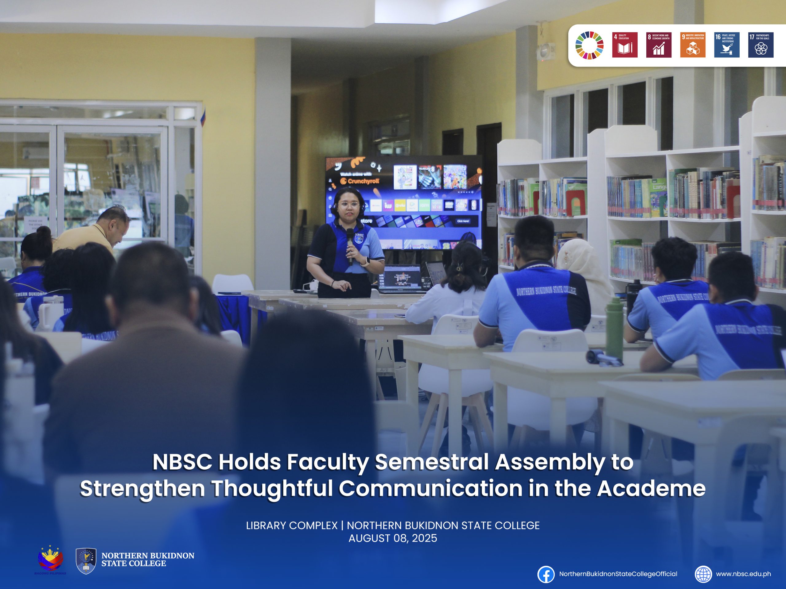 Northern Bukidnon State College (NBSC) gathered its faculty members on August 8, 2025, for the Fireside Chat: Faculty Semestral Assembly under the theme “Clear Minds, Kind Words: Fostering Thoughtful Communication in the Academe” at the Library Complex. The event aimed to promote constructive dialogue, collaboration, and professional growth among faculty and administrative staff under the academic cluster.