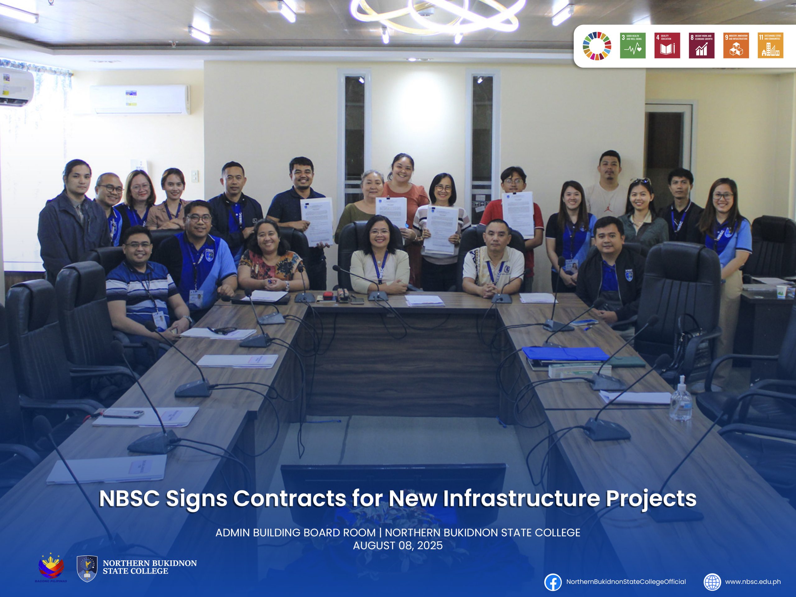 Northern Bukidnon State College (NBSC) has formally signed contracts with winning contractors for several major infrastructure projects during a Contract Signing and Pre-Construction Conference held last August 8, 2025, at the Board Room of the Central Administration Building. The activity also served as a venue to discuss project timelines, responsibilities, site readiness, and compliance requirements before construction begins.