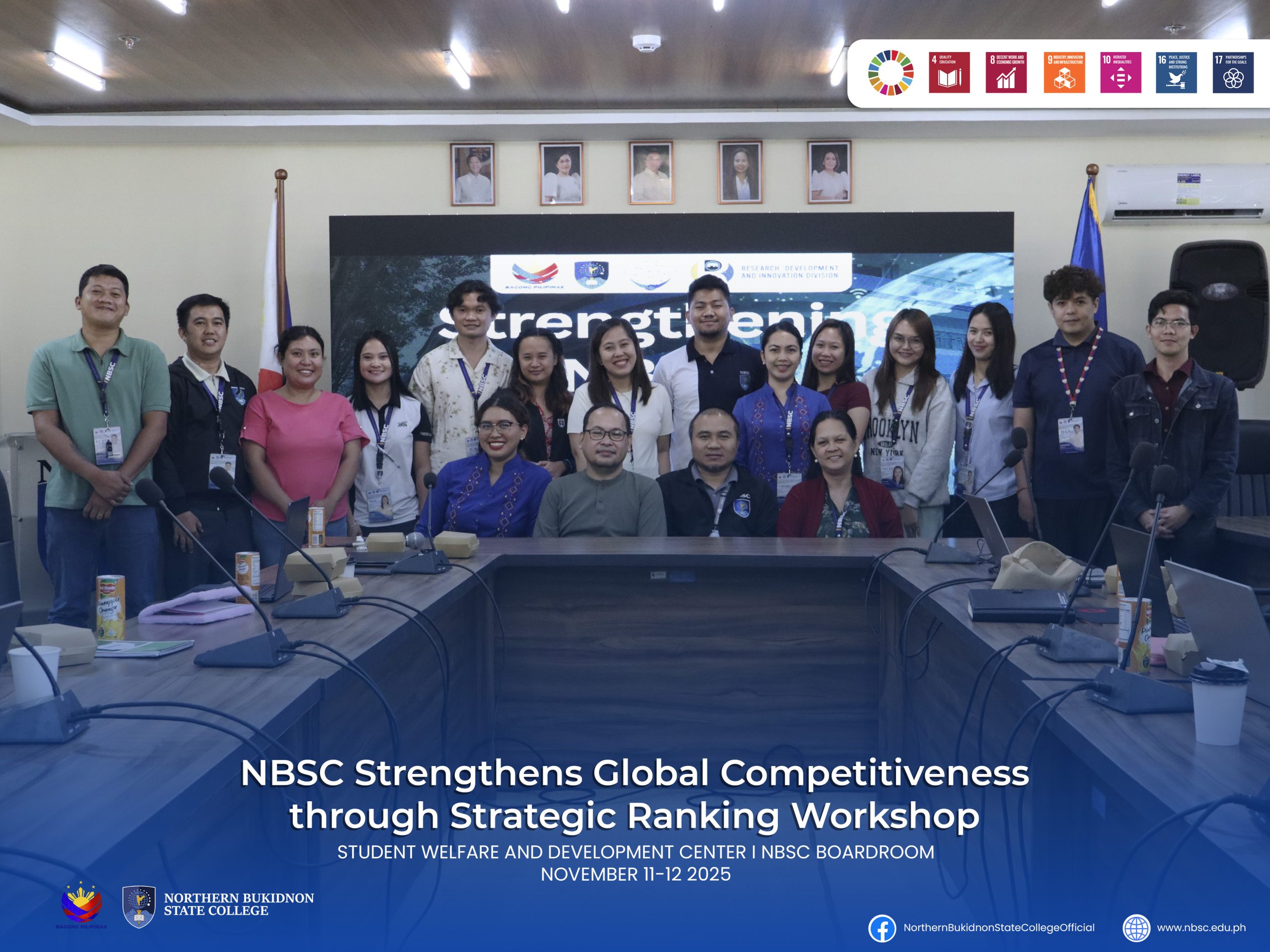 Northern Bukidnon State College (NBSC) hosted a two-day capacity-building activity on November 11–12, 2025, designed to enhance the college’s understanding of global ranking systems and strengthen its international reputation. The event, held at the Student Welfare and Development Center (SWDC) and the NBSC Boardroom, gathered key faculty, staff, and experts to identify strategies for elevating NBSC’s position among higher education institutions worldwide.