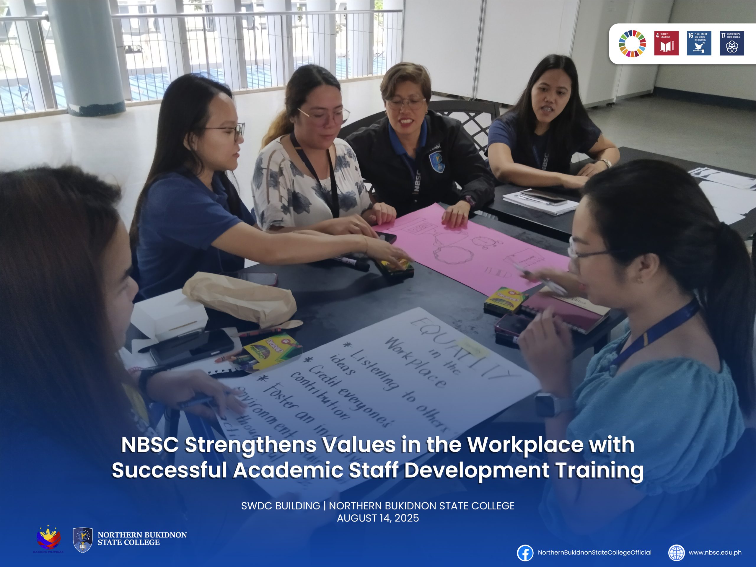 Northern Bukidnon State College (NBSC) successfully completed its Academic Staff Development Training Session 2, focused on Values in the Workplace. Held on August 14 at the SWDC 2nd floor, the training was led by Mr. Reynan S. Salo, instructor in the Department of General Education Curricula and the Teaching, Learning, and Professional Development Coordinator.