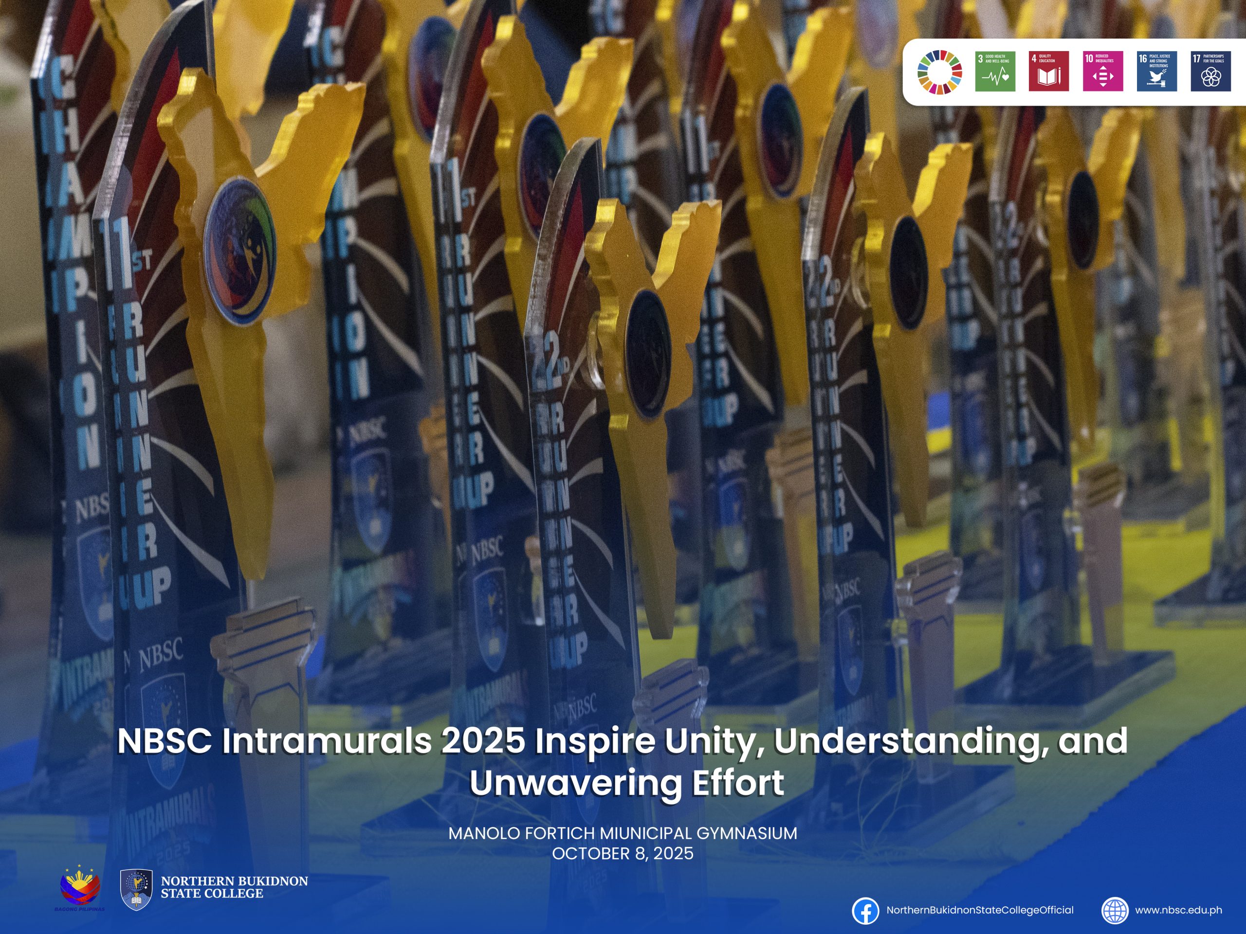 Read MoreNBSC INTRAMURALS 2025: INSPIRE UNITY, UNDERSTANDING, AND UNWAVERING EFFORT Northern Bukidnon State College (NBSC) held its awarding ceremony for Intramurals 2025 on October 8, 2025, at the Municipal Gym in…