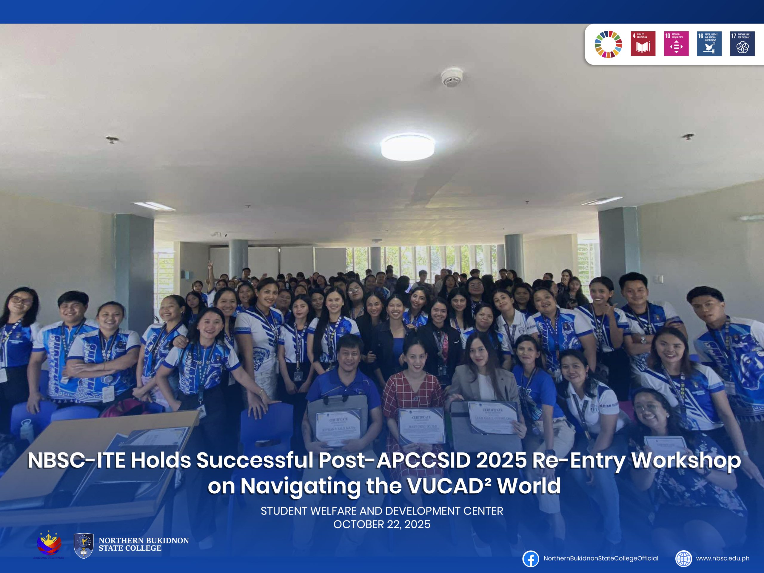 NBSC-ITE HOLDS POST-APCCSID 2025 RE-ENTRY WORKSHOP ON NAVIGATING THE VUCAD² WORLD The Institute of Teacher Education (ITE) of Northern Bukidnon State College (NBSC) conducted a half-day seminar-workshop titled “Navigating the…