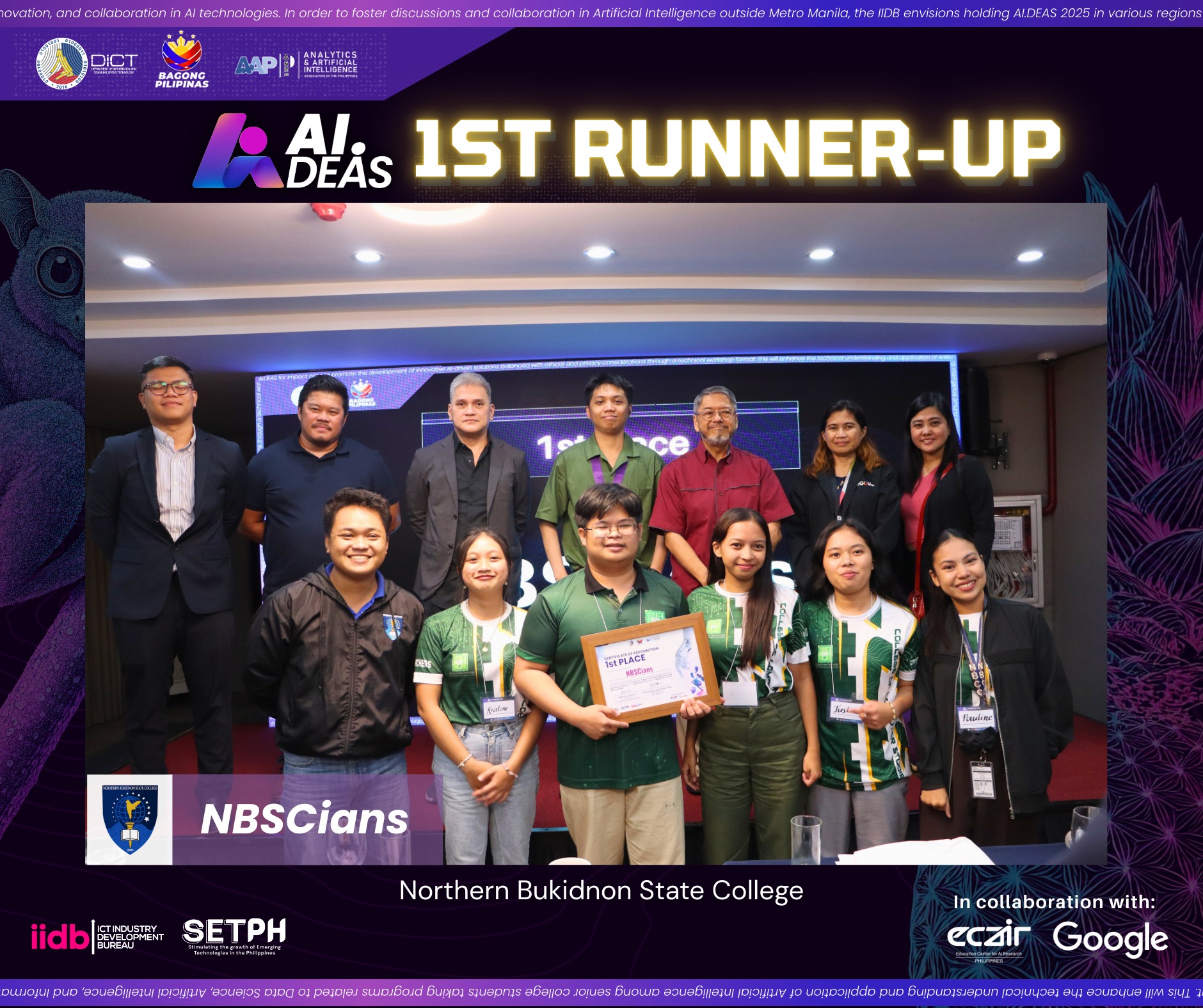 NBSCians AI DEAS 1st Runner -Up With immense pride and joy, Northern Bukidnon State College (NBSC) congratulates our Institute for Computer Studies (ICS) team for securing 1st Place in the…