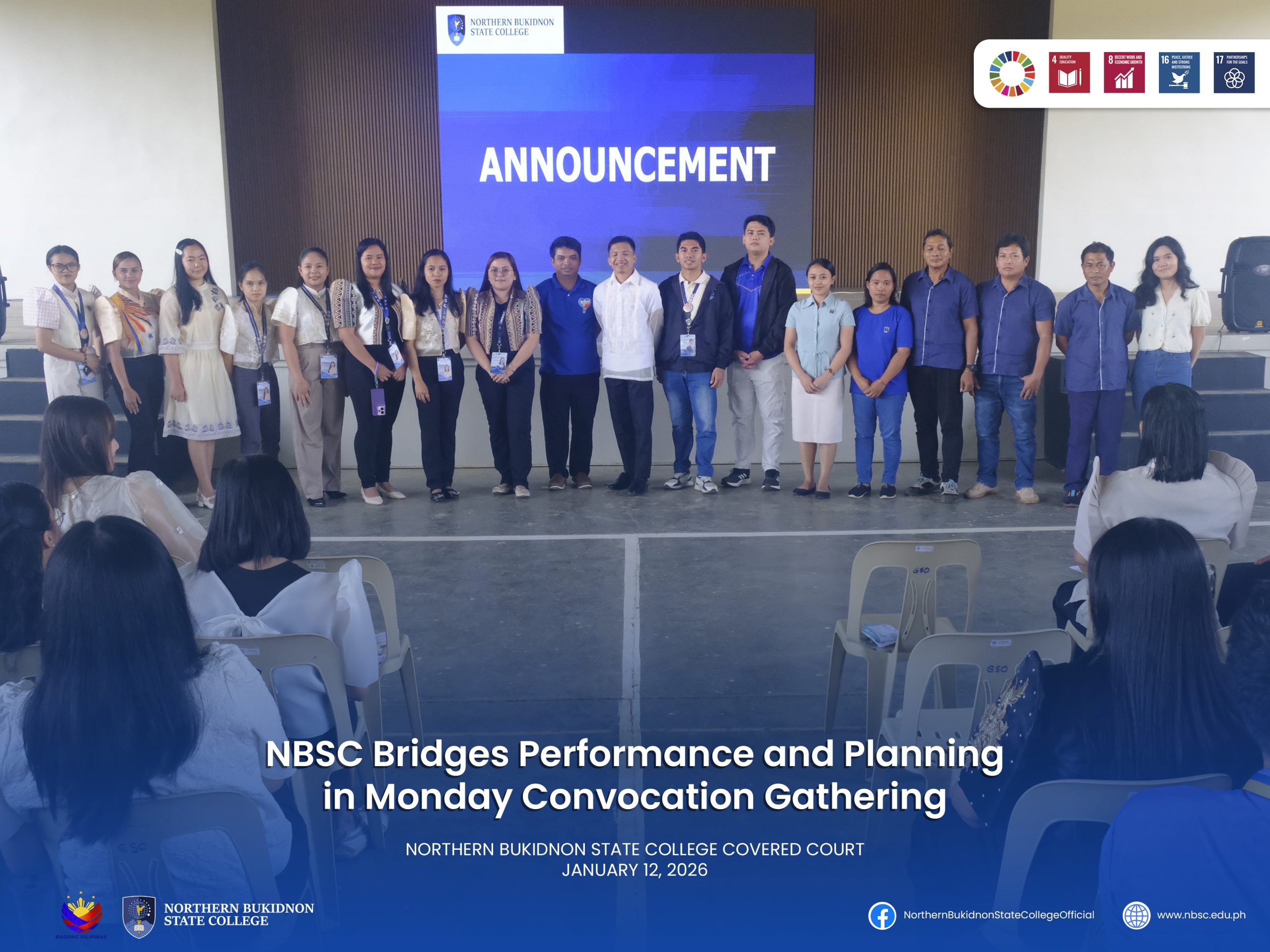 NBSC BRIDGES PERFORMANCE AND PLANNING IN MONDAY CONVOCATION GATHERING Northern Bukidnon State College (NBSC) conducted its Monday Convocation on January 12, 2026, at the NBSC Covered Court, bringing together administrators,…