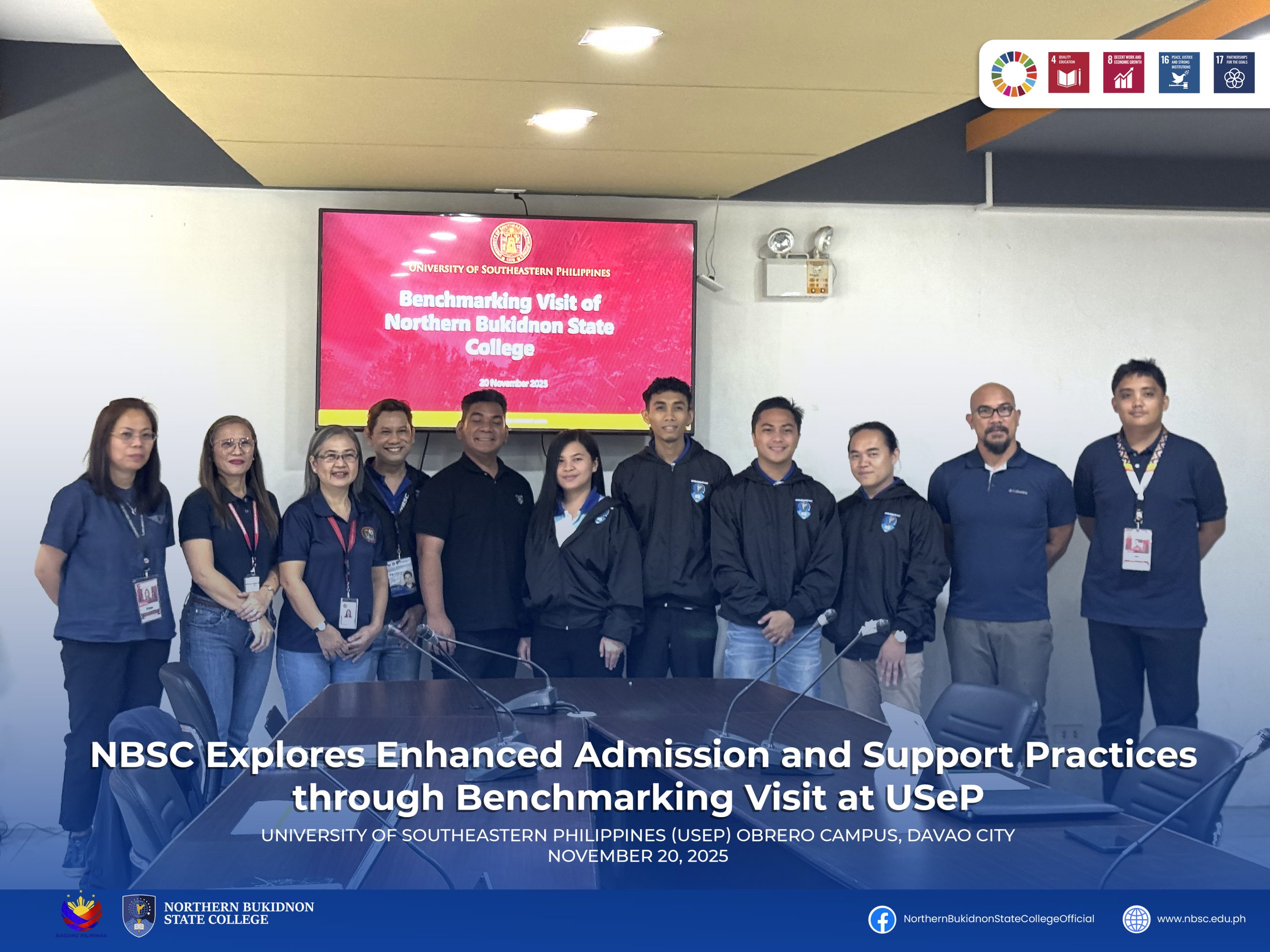 Read MoreNBSC EXPLORES ENHANCED ADMISSION AND SUPPORT PRACTICES THROUGH BENCHMARKING VISIT AT USEP Northern Bukidnon State College (NBSC) undertook a benchmarking visit to the University of Southeastern Philippines (USeP) on November…