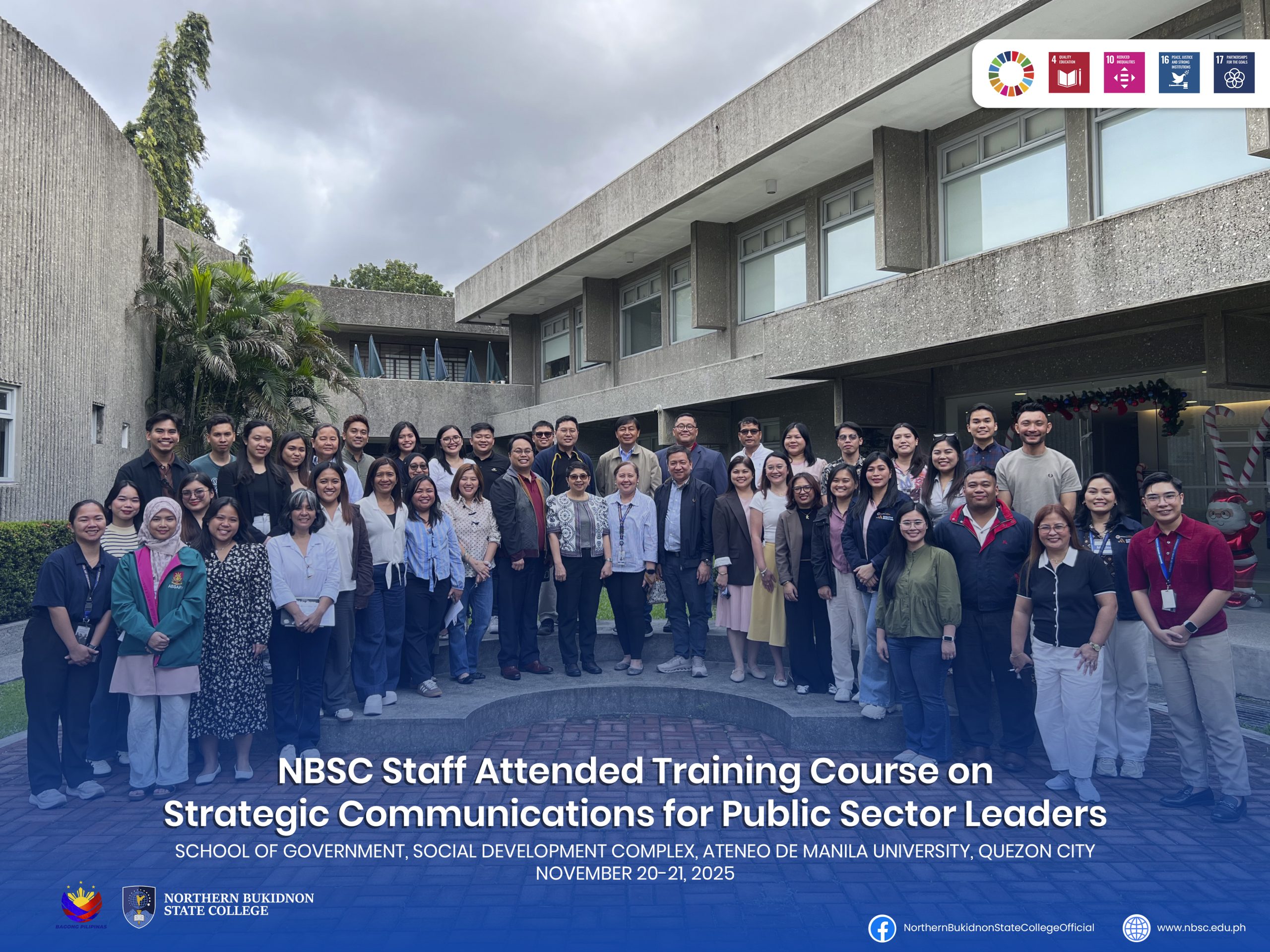 Read MoreNBSC STAFF ATTENDED TRAINING COURSE ON STRATEGIC COMMUNICATIONS FOR PUBLIC SECTOR LEADERS Northern Bukidnon State College (NBSC) recently participated in a two-day training course on Strategic Communications for Public Sector…