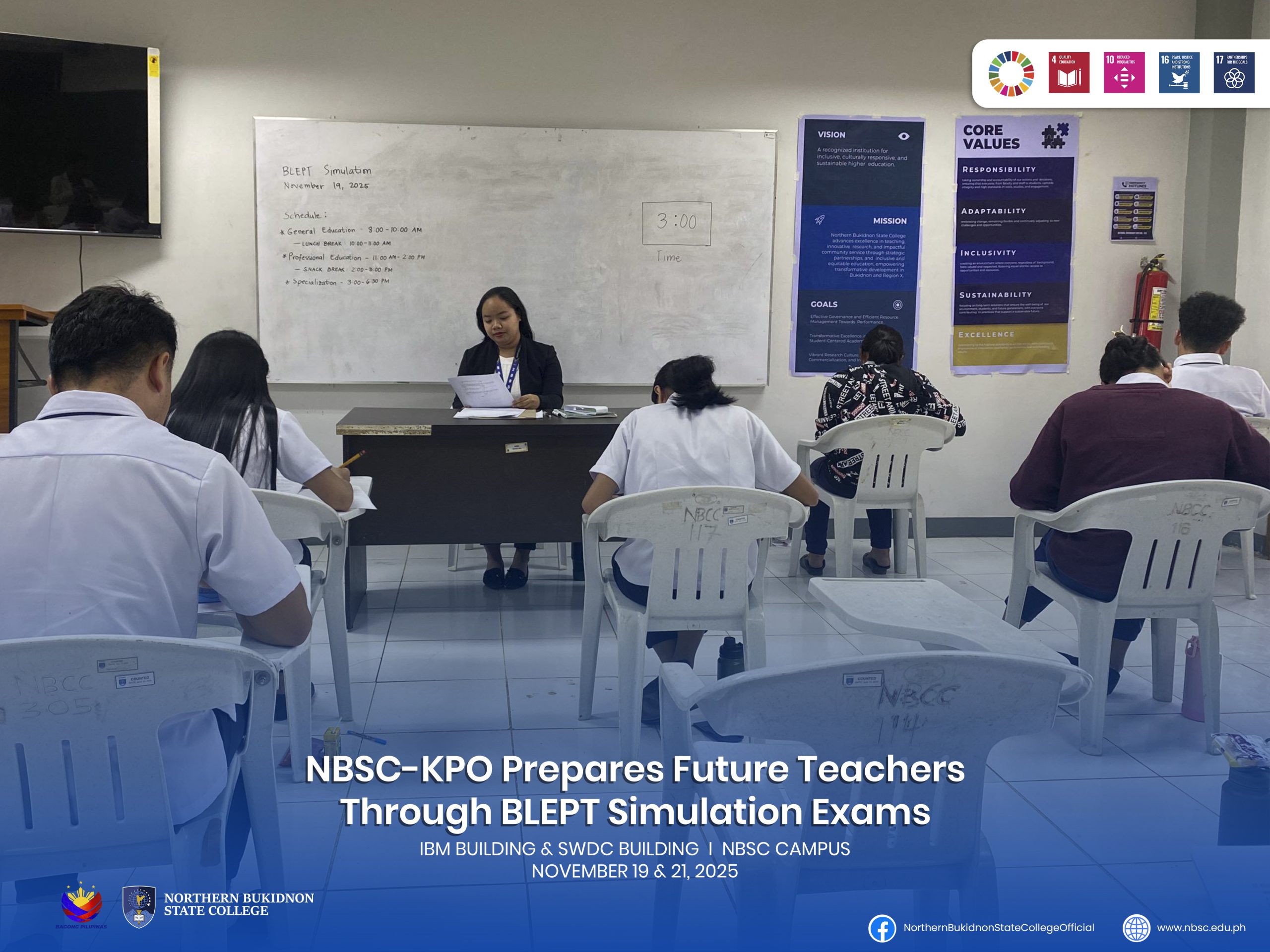 Read MoreNBSC-KPO PREPARES FUTURE TEACHERS THROUGH BLEPT SIMULATION EXAMS Northern Bukidnon State College (NBSC), through its Kalampusan Program Office (KPO), recently conducted a series of Board Licensure Examination for Professional Teachers…